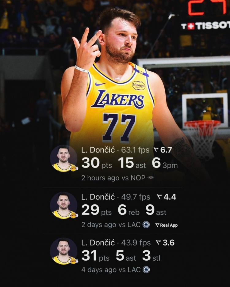 胜利冲锋!东契奇代表湖人出战9场 累计正负值高达+80今日+37
