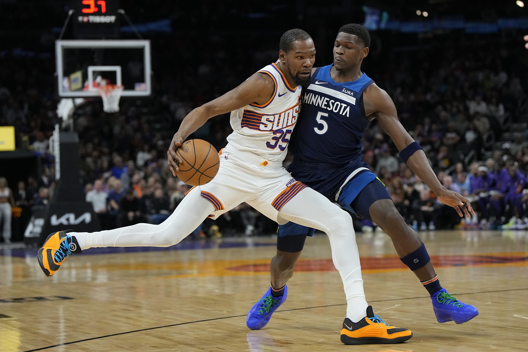 3月3日讯 今天结束的一场NBA常规赛,森林狼在客场116比98击败了太阳。赛后爱德华兹接受了采访。谈到为何自己对阵太阳会打得好,爱德华兹说:“(因为)凯文-杜兰特。他是NBA历史上我最喜欢的球员,我