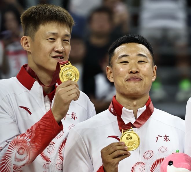 而广东全队拿到金牌的时候,每个人都好好打量了一下金牌,然后炫耀金牌,这一刻每个人都在展露笑。确实这次比赛的目标就是冠军,每个球员的压力都非常大,有这样的结果让全队兴奋。