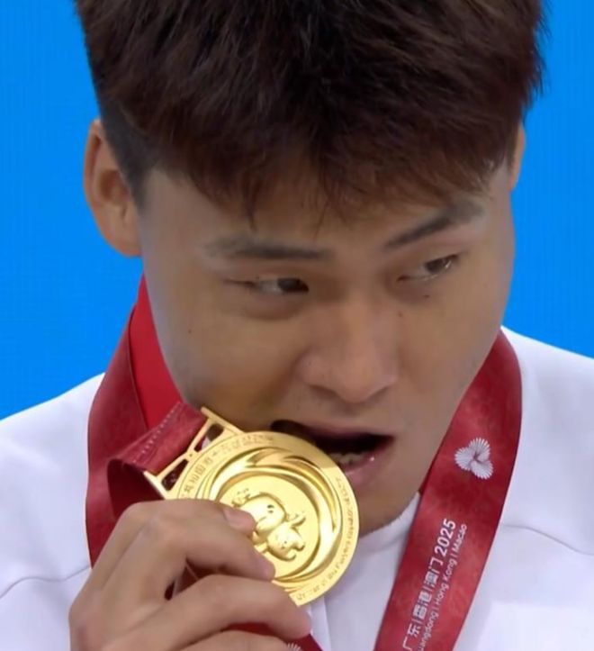而且赵睿还专门咬了一下金牌,他在这支球队就是绝对核心了,好多场比赛都是赵睿率先完成暴走,帮助球队扩大优势。值得一提的是,当年赵睿拿下银牌之后,他还特地咬了一下周琦的金牌,今年他终于圆梦了。